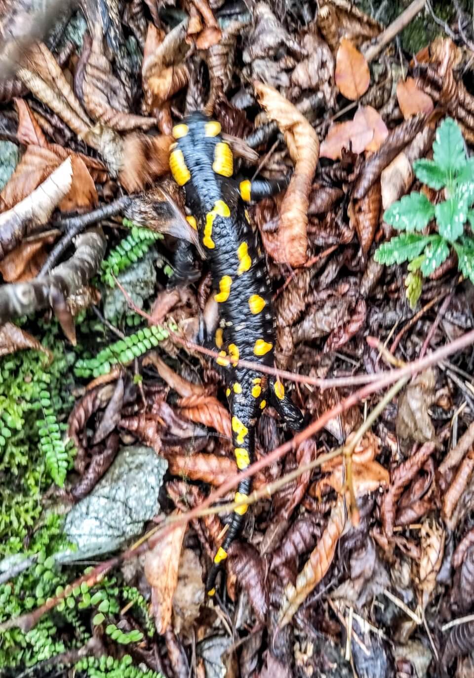 Nach einem etwas verregneten Vormittag sind wir während unseres Spaziergangs am Sonntagnachmittag 15 Feuersalamandern begegnet. Es sind faszinierende Tiere!